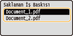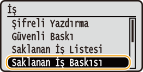 tuşlarını kullanarak <Saklanan İş Baskısı> seçeneğini belirleyin ve