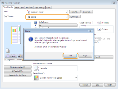 [Çıkış Yöntemi] (Çıkış Yöntemi) içinde [Depola] (depo) öğesini seçin ve [Evet] öğesine tıklayın.
