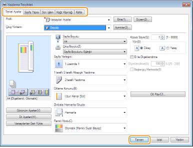 Burada değiştirilen ayarlar, belge ile birlikte saklanır. Belge, bir sonraki yazdırılışı sırasında, saklanmış ayarlarla yazdırılır.
