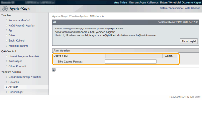 Makinenizden dışa aktarılan verileri yükleyin (içe aktarın). Makinenizle aynı model ise, başka bir makineden ayarları da içe aktarabilirsiniz.
