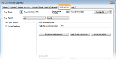 [Aygıt Ayarları] (Aygıt Ayarları) sekmesini tıklatın ve gerekli ayarları belirtin.