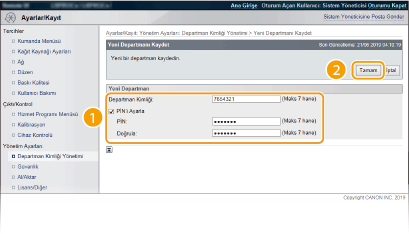Departman Kimliğini ve PIN'i Kaydetme/Düzenleme