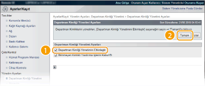 [Departman Kimliği Yönetimini Etkinleştir] onay kutusunu seçin ve [Tamam] öğesine tıklayın.