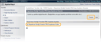 [Departman Kimliği Yönetimi PİN Onaylaması Kullan] Onay kutusunu seçin