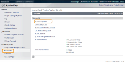 [Yönetim Ayarları] öğelerine tıklayın.