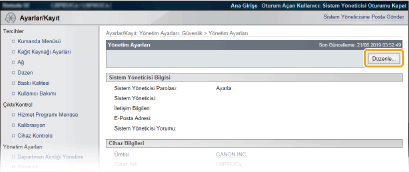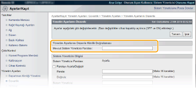 [Mevcut Sistem Yöneticisi Parolası] Alanına Sistem Yöneticisi parolasını girin.