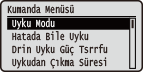 <Açık> olarak ayarlanmış olan bu öğe ile yazdırma işlemi yaparken, makine uyku modundan çıkmaz. Böyle bir durumdauyku modundan çıkmak için öğesine basın. |