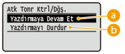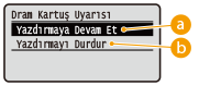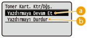 <Yazdırmaya Devam Et> veya <Yazdırmayı Durdur>