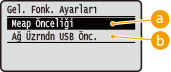 <Meap Önceliği> veya <Ağ Üzrndn USB Önc.>