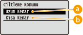 Yatay yönlü belgeDeğer Ayarlanması | Uzun kenardan ciltleme | Kısa kenardan ciltleme |