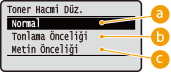 Metinler ve çizgiler çözünürlüğü koruyacak toner düzeyi kullanılarak yazdırılır, diğer tür veriler tonu koruyacak toner düzeyi ile yazdırılır.