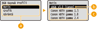 Metin sRGB v3.0 (Canon)  Canon HDTV gamma 1.5 Canon HDTV gamma 1.8 Canon HDTV gamma 2.4 Grafik sRGB v3.0 (Canon)  Canon HDTV gamma 1.5 Canon HDTV gamma 1.8 Canon HDTV gamma 2.4 Görüntü sRGB v3.0 (Canon)  Canon HDTV gamma 1.5 Canon HDTV gamma 1.8 Canon HDTV gamma 2.4 |