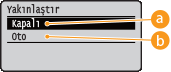 Eğer <Açık> öğesini seçerseniz, orijinaline bağlı olarak resmin bazı kısımları kağıdın kenar bölgesinde eksik yazdırılabilir ya da kağıt kısmen lekelenebilir. |