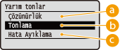 Yarım tonları (görüntünün daha açık ve daha koyu alanları arasında kalan aralık) yeniden üretmek için yazdırma yöntemini seçebilirsiniz.