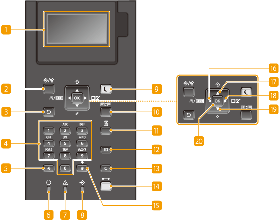 Prepína medzi režimom online (prijímajú sa tlačové úlohy) a režimom offline (neprijímajú sa žiadne tlačové úlohy). Toto tlačidlo sa rozsvieti zelenou farbou, keď je zariadenie online, a zhasne, keď je zariadenie offline. Bežne udržiavajte zariadenie v režime online, ale nastavte ho na režim offline, keď zadávate nastavenia pre