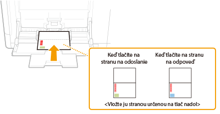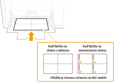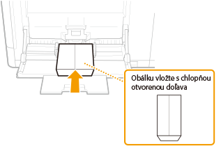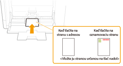 Vložte obálky s orientáciou na výšku (s krátkym okrajom smerom k zariadeniu) a so stranou bez lepidla (prednou) lícom nadol. Na zadnú stranu obálok sa nedá tlačiť.