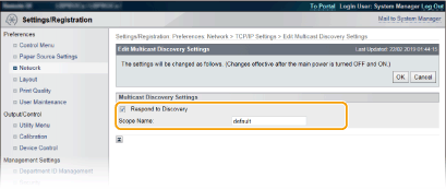 1 | Kliknite na položku [Edit] v položke [Multicast Discovery Settings]. ![]() |
