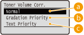 Pre každú farbu CMYK môžete vykonať jemné doladenie hustoty tonera použitého pri tlači osobitne pre tri rôzne oblasti hustoty. Táto položka sa nezobrazí vtedy, keď je možnosť <Toner Save> nastavená na hodnotu <On>.
