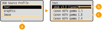 Text sRGB v3.0 (Canon)  Canon HDTV gamma 1.5 Canon HDTV gamma 1.8 Canon HDTV gamma 2.4 Graphics sRGB v3.0 (Canon)  Canon HDTV gamma 1.5 Canon HDTV gamma 1.8 Canon HDTV gamma 2.4 Image sRGB v3.0 (Canon)  Canon HDTV gamma 1.5 Canon HDTV gamma 1.8 Canon HDTV gamma 2.4 |