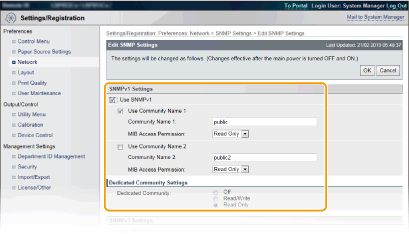 [Read/Write] | Ļauj skatīt un mainīt MIB objektu vērtības, izmantojot atvēlētās kopienas funkciju (Dedicated Community). |
