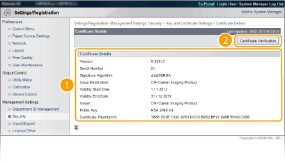 Pārbaudiet detalizētu informāciju par sertifikātu un noklikšķiniet uz [Certificate Verification].
