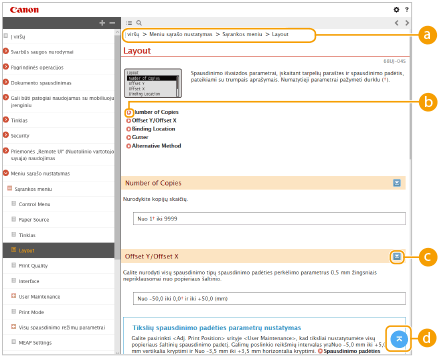 Spustelėkite, kad nustatytumėte vadovo Vartotojo instrukcija rodymą, pvz., simbolių dydį ar išdėstymą.