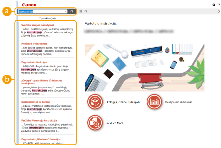 Spustelėkite, kad būtų rodoma, kaip peržiūrėti vadovą Vartotojo instrukcija, atlikti paiešką ir kita informacija.