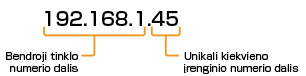 IP adresas susideda iš keturių skaitmenų, atskirtų taškais (.) (pavyzdys: 192.168.1.45). Kiekvienas skaitmuo turi būti nuo 0 iki 255. Pirmieji trys skaitmenys gali sutapti su maršrutizatoriaus, nes tinkle jie yra dažni. Paskutinį skaitmenį (pvz., 45, jei IP adresas yra 192.168.1.45) rinkitės kitą, t. y. ne tą, kuris jau naudojamas kitiems įrenginiams.