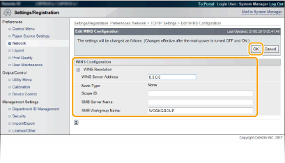 Pažymėkite žymės langelį [WINS Resolution], nurodykite reikiamus parametrus ir spustelėkite [OK].