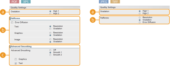 Jei nurodote XPS failų spausdinimo parametrusIšvalykite žymės langelį [Prioritize Print Ticket]. Jei žymės langelis pažymėtas, kai kurie elementai nebus prieinami. ![]() |