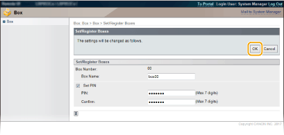 Laukui galite priskirti pavadinimą arba nustatyti PIN kodą jam atidaryti. Jei laukui priskirsite draugišką pavadinimą, spausdintuvo tvarkyklėje rinkdamiesi vietą dokumentams išsaugoti lengvai identifikuosite lauką. Jei nustatysite PIN kodą, išsaugotus dokumentus pasiekti galės tik tam tikri vartotojai, o tai padidins saugumą.