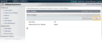 [IPv4 Manual Settings] | Pasirinkite, kad nurodytumėte vieną IPv4 adresą arba IPv4 adresų diapazoną „IPSec“ taikyti. Įveskite IPv4 adresą (arba diapazoną) teksto lauke [Addresses to Set Manually]. |