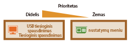 Parametrų prioritetasSpausdintuvo tvarkyklėje nurodyti parametrai bus viršesni už nurodytus valdymo pulte. | | Atliekant USB tiesioginį spausdinimą arba tiesioginį spausdinimą, spausdinimo parametrai arba TIFF duomenyse išsaugoti parametrai bus viršesni už nurodytus valdymo pulte. | |