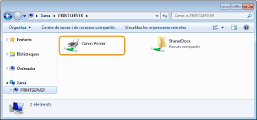 Visualització de les impressores compartides al servidor d'impressió