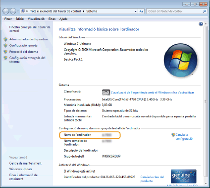 Comprovació del nom de l'ordinador