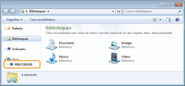 Seleccioneu el servidor d'impressió a [Xarxa] o [Els meus llocs de xarxa].