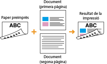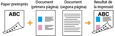 En aquesta secció es descriu com carregar paper preimprès amb la col·locació i orientació correctes. Per obtenir una descripció del procediment general per carregar paper al calaix de paper o a la safata multiús, vegeu a continuació. |