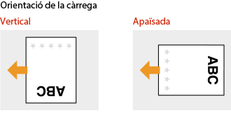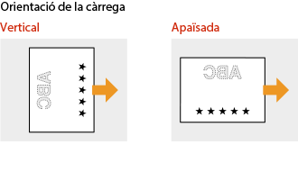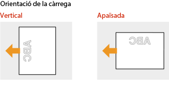 Quan utilitzeu paper que s'hagi preimprès amb un logotip, pareu atenció amb l'orientació del paper quan el carregueu. Carregueu el paper correctament de manera que la impressió es porti a terme a la cara correcta del paper on hi ha el logotip.
