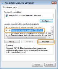 Seleccioneu la casella [Protocol de Internet versió 4 (TCP / IPv4)] o [Protocol de Internet] i feu clic a [Propietats].