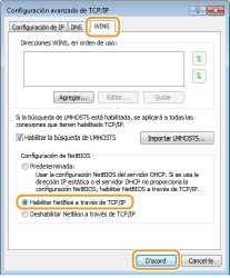 Feu clic a la pestanya [WINS], seleccioneu [Habiliteu NetBIOS a través de TCP / IP] i feu clic a [D'acord].