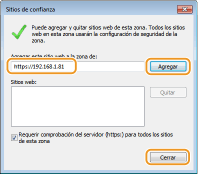 Assegureu-vos que es mostri "https://<adreça IP de l'equip> o <nom d'amfitrió de l'equip>.<nom de domini>/" i feu clic a [Afegeix]