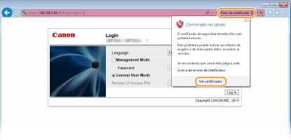 Escriviu "https://<adreça IP de l'equip>/" al camp de l'adreça i premeu la tecla [ENTER].