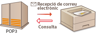 En aquesta secció es descriu com s'especifiquen les opcions per rebre i imprimir correus electrònics a l'equip. Utilitzeu un ordinador per especificar les configuracions per rebre correus electrònics i el tauler de control de l'equip per especificar les configuracions d'impressió de correus electrònics.