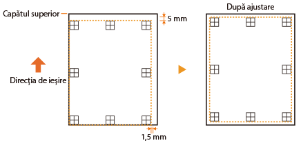. Pe baza acestor marcaje stabiliţi direcţia şi distanţa care urmează să fie reglate. Când poziţia de imprimare este cea obişnuită, toate marcajele sunt imprimate într-o poziţie de 5 mm faţă de colţul de hârtie cel mai apropiat.