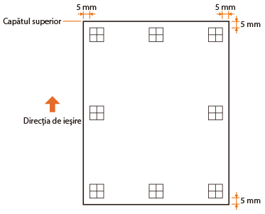 Marginea hârtiei care iese mai întâi la imprimarea hârtiei este partea superioară a unei imprimări de reglare a poziţiei de imprimare. Când verificaţi poziţia de imprimare, verificaţi care este partea superioară a marginii hârtiei.