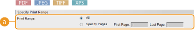 [Specify Pages] | Selectaţi pentru a specifica intervalul de imprimare. Această setare nu este disponibilă pentru fişierele JPEG. |