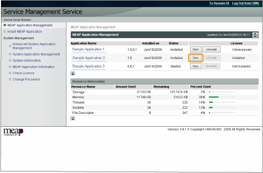 From the top page of the SMS, click [MEAP Application Management].