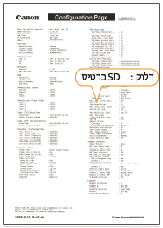 הדפס את דף תצורה, וכרטיס ה-SD מותקן כהלכה אם ההגדרה "כרטיס SD" תחת "תפריט בקרה" מוגדרת לאפשרות "פועל." ![]() אם לא מצוין מידע על מצב כרטיס ה-SD כרטיס ה-SD אינו מותקן כהלכה. הסר את כרטיס ה-SD מהמכשיר, והתקן אותו שוב. | ![]() |