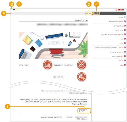 לחץ כדי להציג מידע המסביר כיצד להציג את מדריך למשתמש, כיצד לבצע חיפוש וכן מידע נוסף.