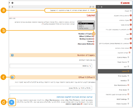 לחץ כדי להגדיר פרמטרים, על מנת לקבוע את אופן התצוגה של מדריך למשתמש , כגון גודל התווים או הפריסה.